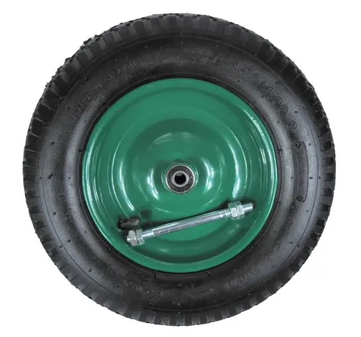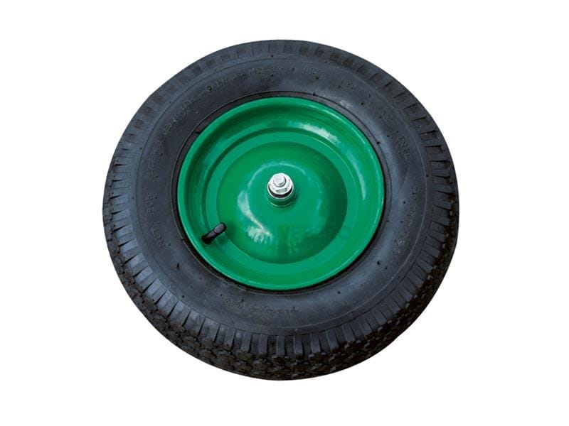 Koło do taczki pompowane Rozmiar 400-8 | 2PR Zawiera oś z nakrętkami i podkładkami. Uwaga Nie pompować koła powyżej wartości 1,8 bar. made in China