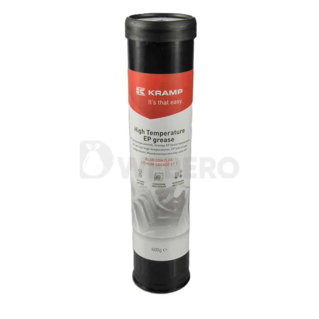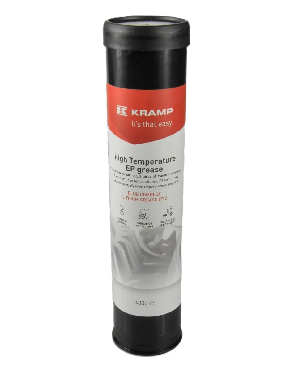 High Temperature EP grease |Smar wysokotemperaturowy 400g | KRAMP Smar Kramp EP to wysokiej jakości smar litowy na bazie oleju mineralnego do smarowania łożysk tocznych i ślizgowych poddawanych dużym obciążeniom ciśnieniowym i wibracjom. Smar dobrze przylega i jest mechanicznie stabilny, o wysokiej odporności na temperaturę, co gwarantuje dobre smarowanie przez dłuższy okres. Odporny na utlenianie i wodę oraz oferuje znakomite zabezpieczenie przed korozją. Dobra przyczepność Szczegóły produktu: Na bazie mydła: hydroksystearynian Li-12