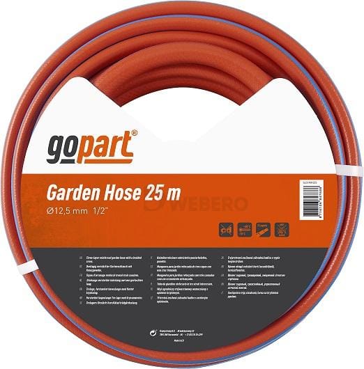 Trójwarstwowy zbrojony wąż ogrodowy Gopart z tekstylnym oplotem krzyżowym. Odporny na osadzanie się glonów i działanie promieni UV. Nie zawiera kadmu. Wewnętrzna warstwa czarna, zewnętrzna nieprzeźroczysta pomarańczowa z niebieskim paskiem. | ![]() |