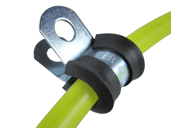 Obejma , opaska metalowa z wkładką gumową. Guma zabezpiecza przed uszkodzeniami oraz tłumi wibracje. Niska waga - 0,010kg średnica otworu montażowego - 6,7mm średnica robocza max. (obejma rozwarta) - 9,5mm średnica robocza min.(obejma skręcona) - 7,9mm szerokość - 15mm