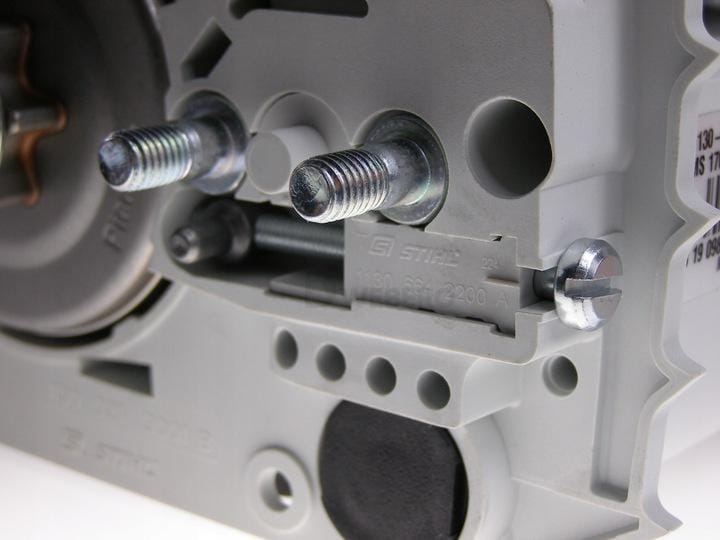 - Wymień gdy: wyrobione gniazdo | pęknięcia | śruba wypada podczas pracy pilarki