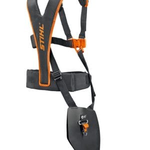 Uprząż do komfortowej pracy kosą, równomiernie rozkłada obciążenie ze wzmocnieniem odcinka kręgosłupa. Ergonomiczne, komfortowe, lekkie, możliwość montażu pasa piersiowego i plecaka na narzędzia. Rozmiar uniwersalny do wzrostu 1.8m