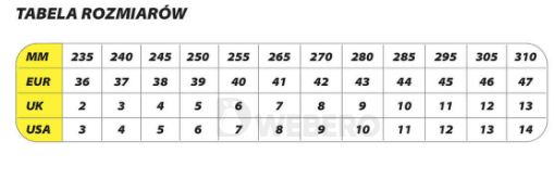 | Materiał podeszwy buta | Poliuretan (PU) dwugęstościowy |