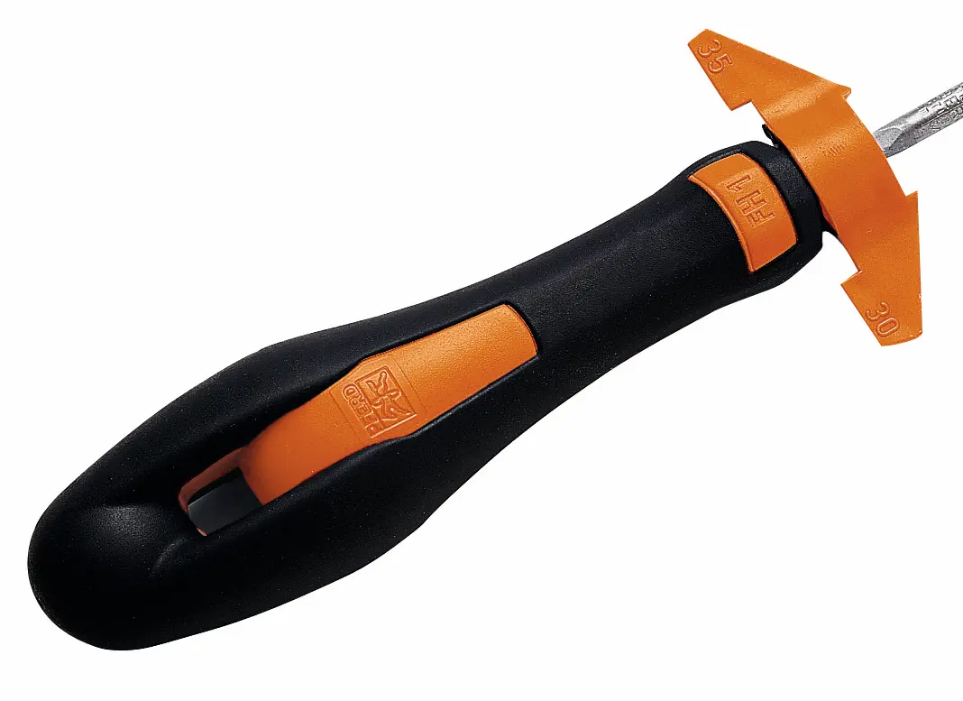 Ergonomiczny uchwyt pilnika do łańcucha pilarki 4,0 - 5,5 mm Rozmiary pilników 13/64, 7/32, 1/4, 5/16 cali Rozmiary pilników 4,0 / 4,5 / 4,8 / 5,16 / 5,5 mm STIHL FH1 Numer katalogowy: 0000-881-4502 Długość 120 mm