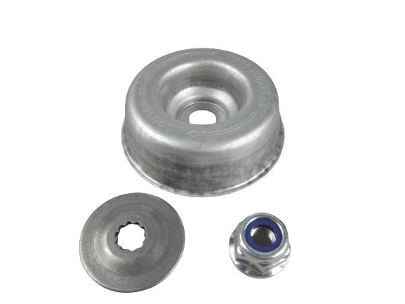 Zestaw montażowy składający się z trzech elementów pozwalających na zamocowanie metalowych narzędzi tnących do kos STIHL. Zestaw składa się z: