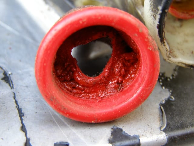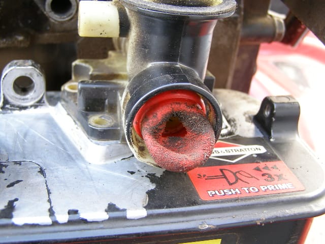 ( Zdjęcia przedstawiają przykładową usterkę spowodowaną pozostawionym paliwem. Rozpuszczenie primera, zatkanie gaźnika, deformację membran oraz korozję zbiornika)